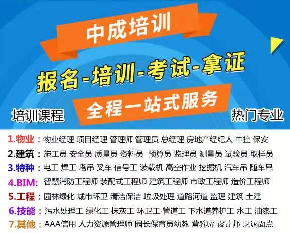 物业管理师、企业管理师、碳排放管理师,碳排放咨询师,碳排放核查师,碳排放评估师,碳排放监测师等、项目管理师、市场营销师、酒店管理师、采购管理师、人力资源管理师、物流管理师、职业经理人、财务管理师、审计管理师、中控安全管理师、平面设计师、形象设计师、家具设计师、景观设计师、包装设计师、室内设计师、广告设计师,全媒体运营师,短视频创作采编,短视频内容运营,皮肤管理师,安全员A证和C证c1.c2.c3,计量员等